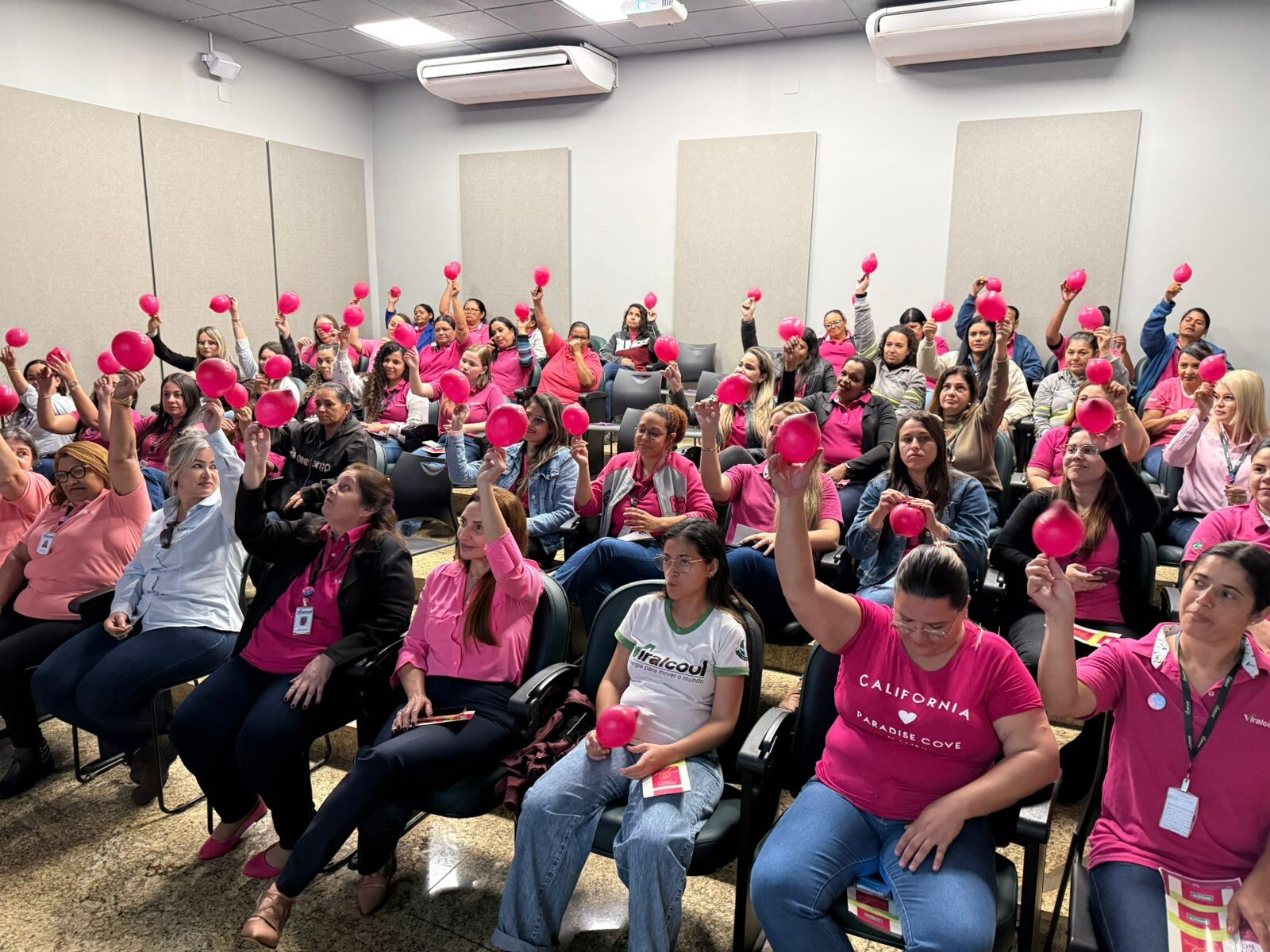 A atividade foi conduzida pela fisioterapeuta Ana Paula Belatto, com foco na prevenção e no diagnóstico precoce do câncer de mama, além de reflexões sobre o autocuidado e a valorização da saúde feminina.