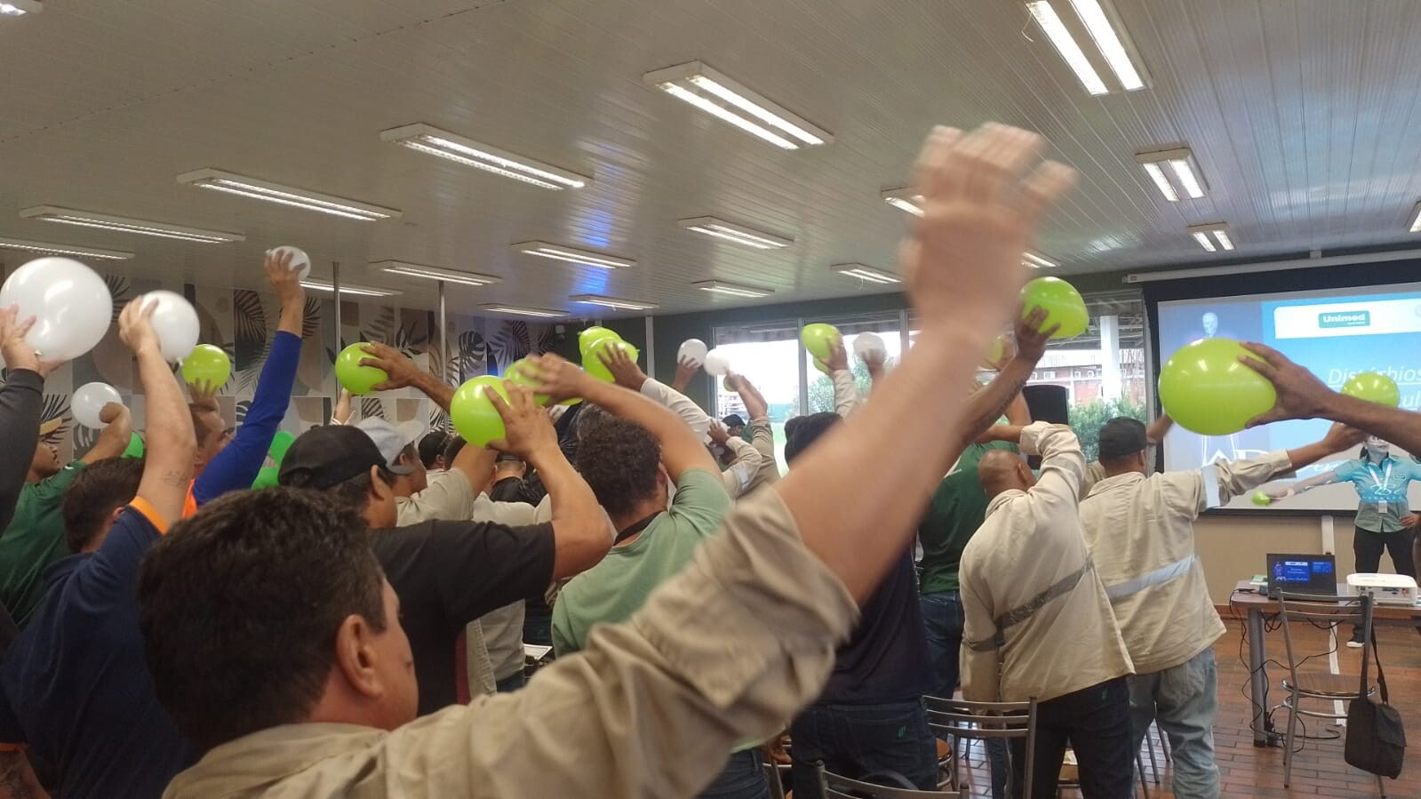 Complementando a programação, os colaboradores participaram também de uma atividade prática de ginástica laboral, reforçando a importância do movimento, do alongamento e da adoção de hábitos saudáveis no dia a dia profissional. A vivência proporcionou um momento de interação, aprendizado e conscientização, demonstrando na prática como atitudes simples podem fazer a diferença na qualidade de vida.